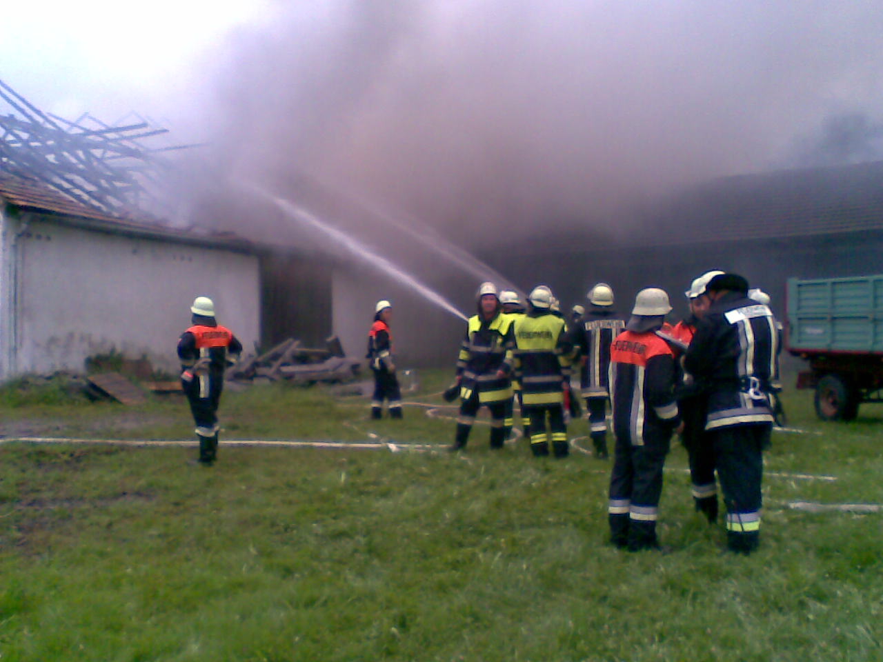Kirchstraße alarmiert. Hier stand eine Scheune nach Blitzschlag in Flammen.