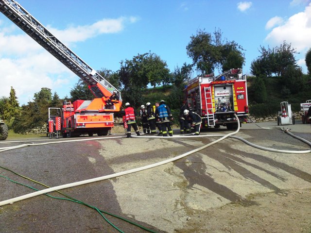 Ortsfeuerwehr aus Ehrenberg den Außenangriff, unterstützt von weiteren Kräften
