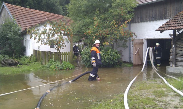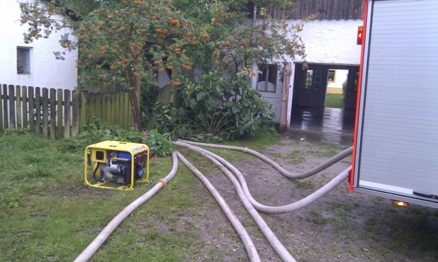 Nebengebäude eines Anwesens knietief unter Wasser. Es konnte in letzter Minute