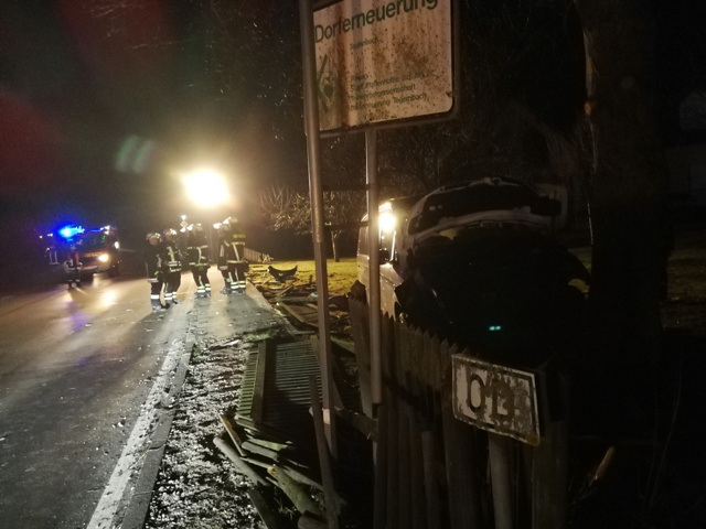 Meter Gartenzaum um und krachte letztendlich gegen einen größeren Baum. Beide
