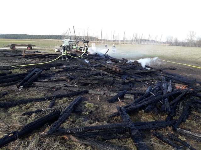 Holzstapel mit Abfallholz über. Unter dem Einsatz von 3-C Rohren war der Brand