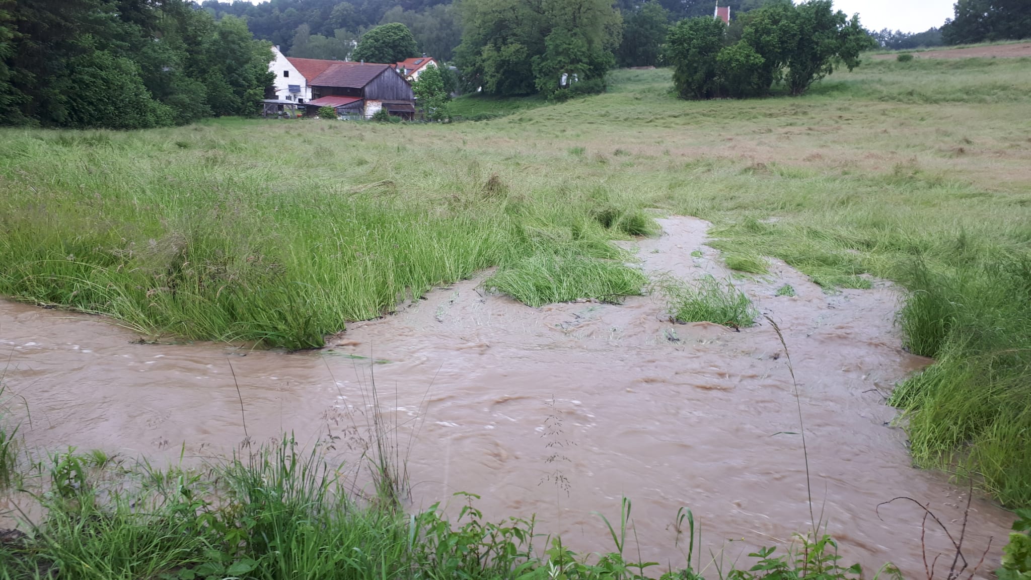 der Tegernbach und ein Graben am Harrerberg über die Ufer treten, ließ dieser
