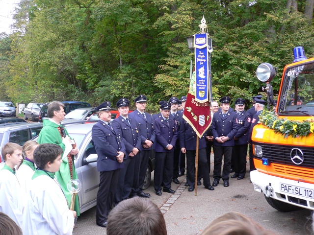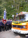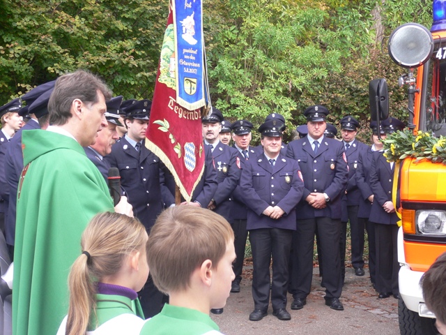 gesegnet werden. Die Feuerwehr Tegernbach erhielt das Fahrzeug von der