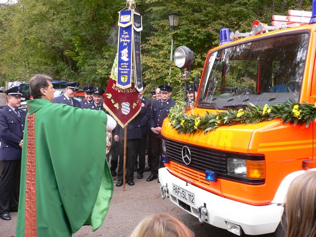 der anschließenden Segnung des Fahrzeuges durch Pfarrer Peter Stempfle
