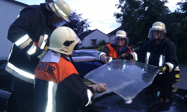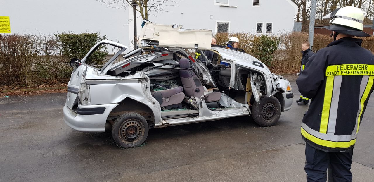 Szenario eines Verkehrsunfalls mit eingeklemmter Person. Dabei
