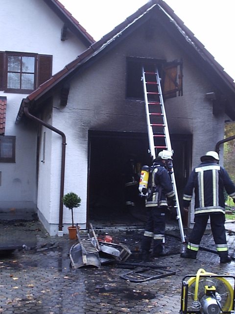 einem Garagenbrand am Erlmühlweg in Tegernbach alarmiert. Da die Alarmierende
