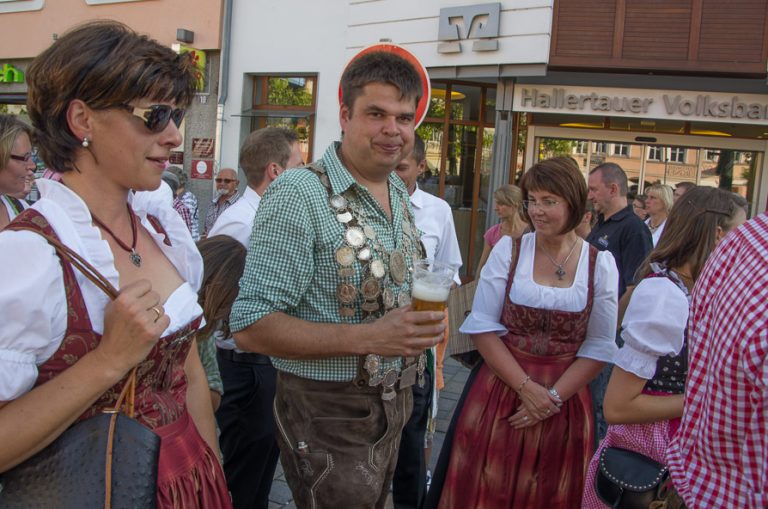 Jedes Jahr am 1. Freitag im September beginnt das Pfaffenhofener Volksfest mit dem traditionellen Volksfestausmarsch. Die Brauereien mit geschmückten Pferdegespannen, die Festwirte mit den Bedienungen, die Stadträte und Ehrengäste voran mit dem 1. Bürgermeister Thomas Herker und alle Stadtvereine bilden einen herrlichen Festzug, der vom Hauptplatz zum Volksfestplatz zieht. Im großen Bierzelt findet anschließend die offizielle Eröffnung mit dem „ozapfa“ durch den 1. Bürgermeister statt.
